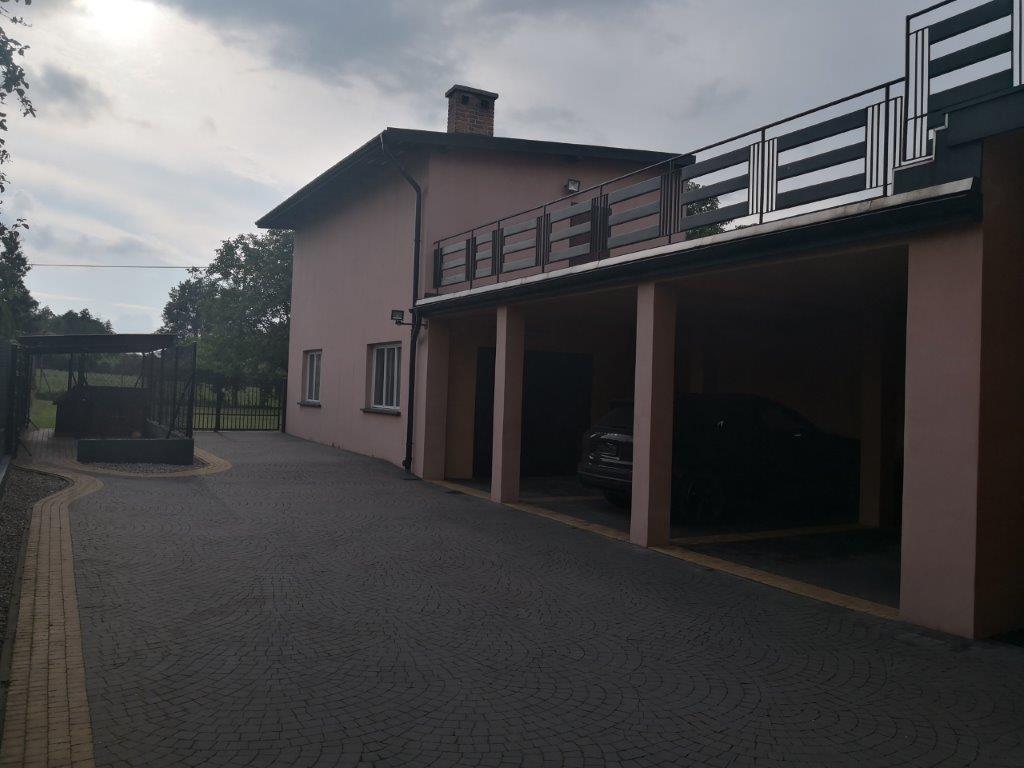 Dom położony w miejscowości Zbylitowska Góra na 8- arowej działce. Budynek posiada 4 kondygnacje : poziom zerowy, parter, pierwsze piętro, poddasze z możliwością adaptacji- doprowadzone wszystkie media. Na każdym poziomie znajduje się niezależne dwupokojowe mieszkanie o powierzchni 58 m/kw. Po za pokojami w skład mieszkania wchodzi; kuchnia , łazienka , toaleta, komórka przy kuchni , balkony. Klatka schodowa mieści się na zewnątrz mieszkań. Schody wyłożone marmurem, a balustrada wykonana z metalu chromowanego. Poziom zerowy jest zaadaptowany na mieszkanie . Media rozdzielone do każdego mieszkania i posiadają oddzielne liczniki. Z klatki schodowej jest wejście na duży taras , pod którym znajdują się 3 stanowiska postojowe na auta. Taras jest zarazem łącznikiem z budynkiem gospodarczym, o powierzchni około 100 m/kw, każda kondygnacja. Do budynku jest wejście przez taras oraz od podwórza. Budynek jest dwukondygnacyjny z doprowadzonymi mediami, więc istnieje również możliwość jego adaptacji na cele mieszkaniowe. W budynku gospodarczym była prowadzona działalność gospodarcza i może być on przeznaczony na taki cel. Istnieje możliwość osobnego wejścia/ dojazdu do budynku gospodarczego drogą z drugiej strony gruntu, Posesja ładnie zagospodarowana, wjazdy wyłożone kostką brukową, metalowa brama i furtka. Rolety antywłamaniowe elektryczne i kute w oknach wychodzących na tylną część posesji. Całość bardzo zadbana i wyposażona we wszystkie udogodnienia . Nowe okna i drzwi wejściowe. Wnętrza na bieżąco remontowane i podnoszony ich standard. Budynek ocieplony. Doskonale zorganizowany dom dla rodziny wielopokoleniowej lub dewelopera .Dobra lokalizacja - niedaleko Tarnowa.