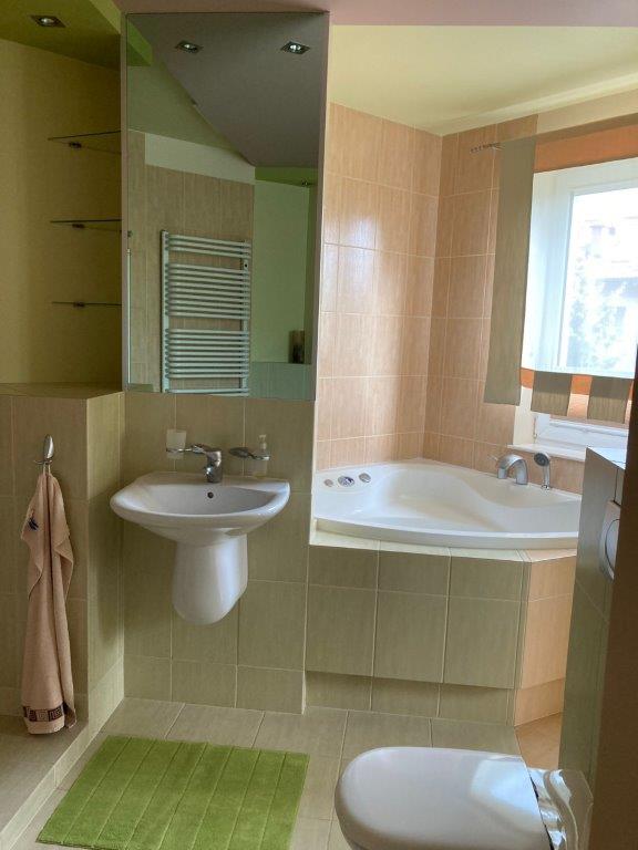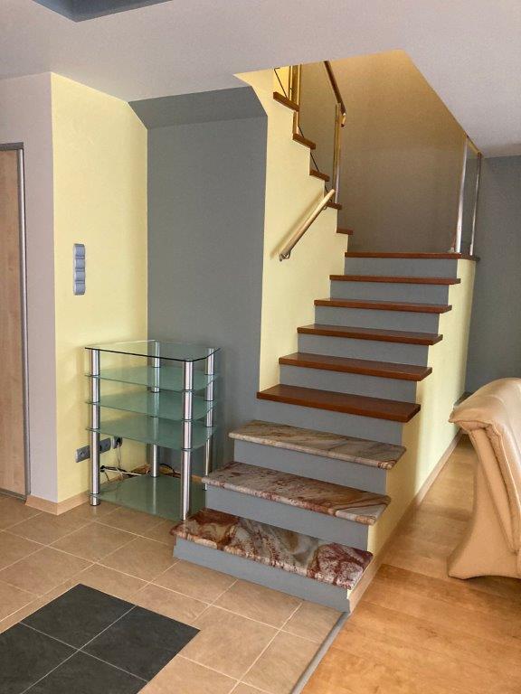 Stan wyposażenia wnętrz bardzo dobry, zadbane obejście wokół budynku.
