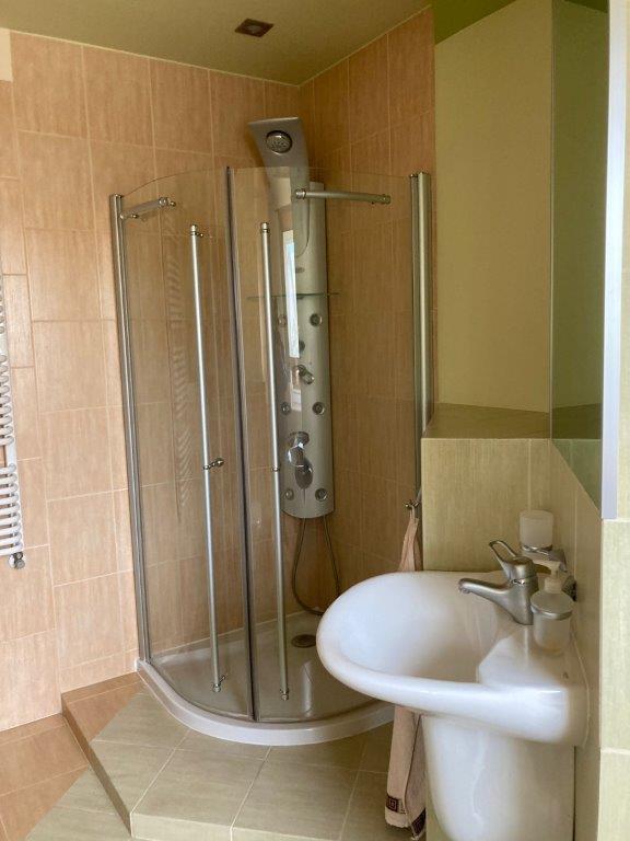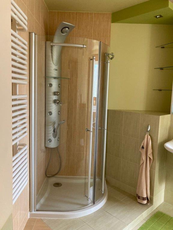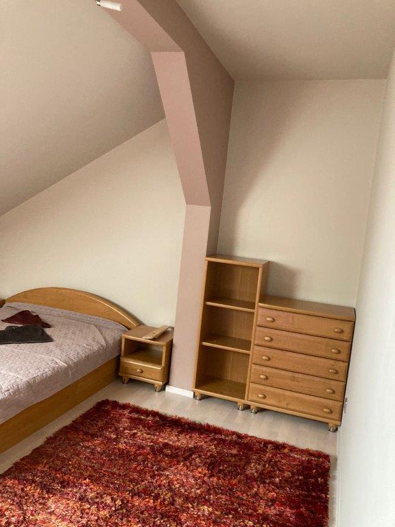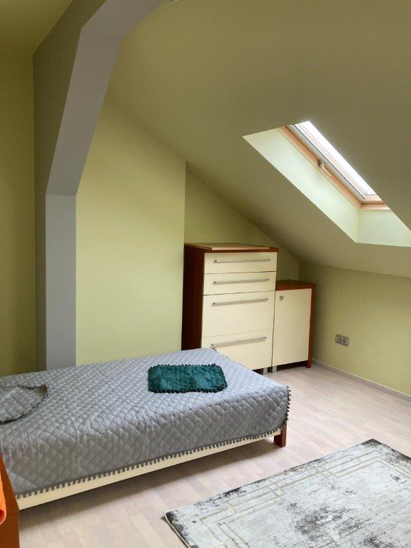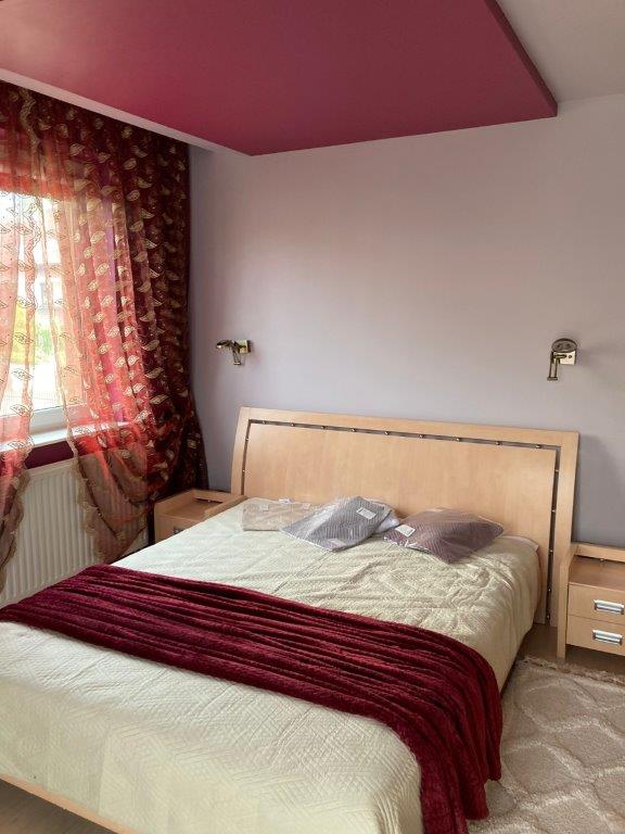 Piętro: sypialnia duża z łazienką i garderobą, oraz dodatkowym pokojem np. gościnnym.